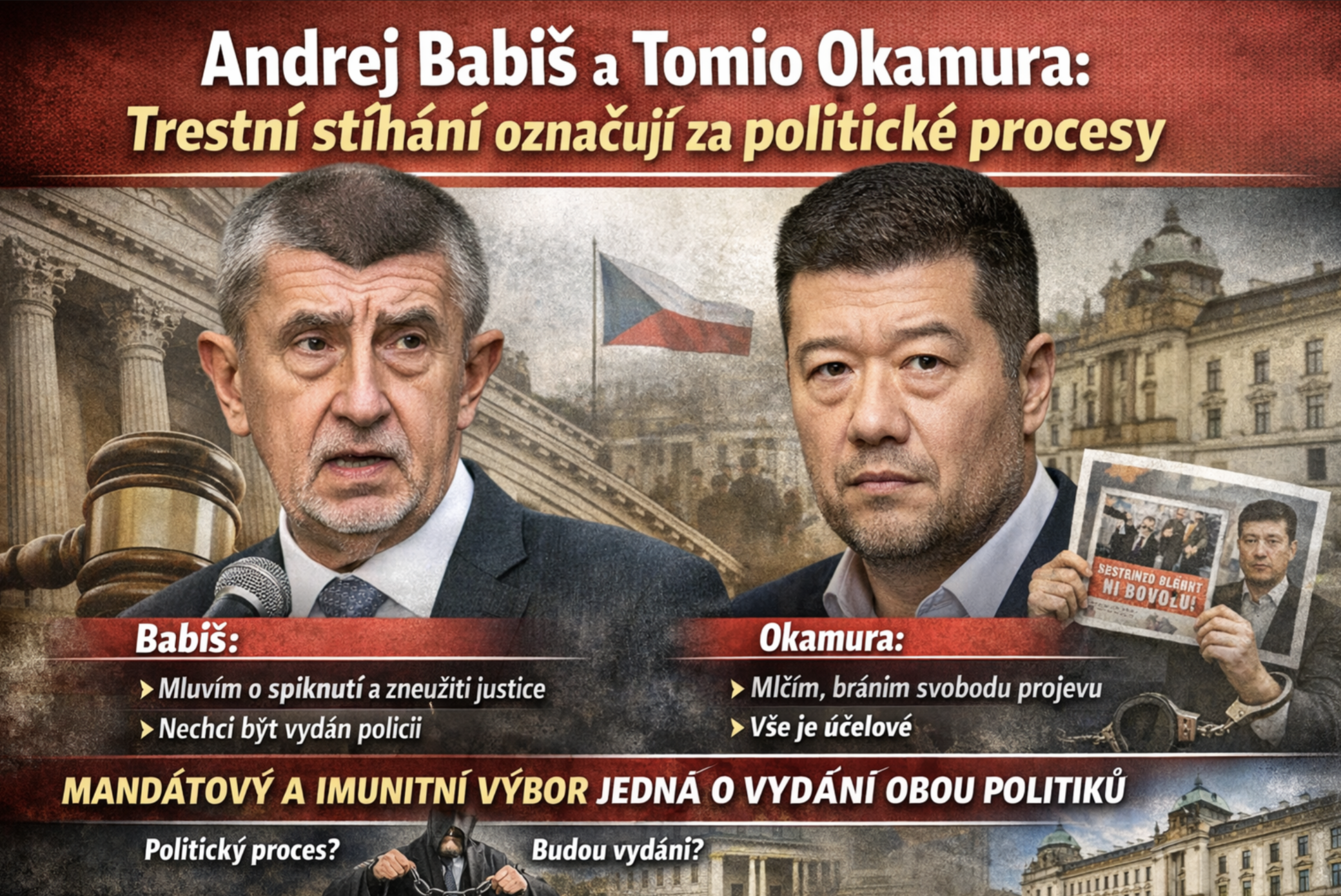 Oba lídři tvrdí, že čelí účelovým trestním řízením. Andrej Babiš mluví o spiknutí a zneužití justice, Tomio Okamura se hájí mlčením. Mandátový a imunitní výbor znovu projednává jejich vydání k trestnímu stíhání.
