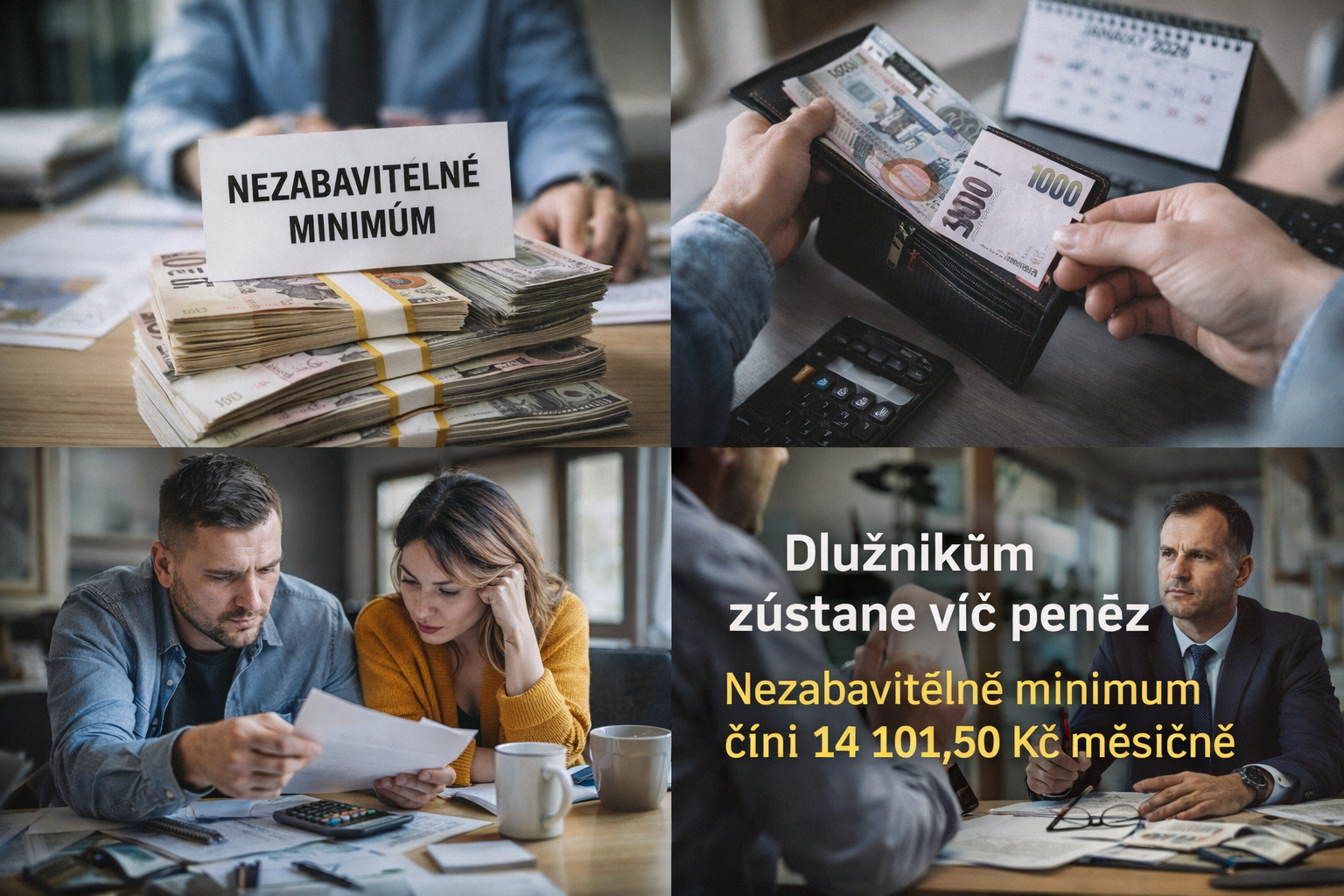 Základní nezabavitelná částka pro letošní rok je 14 101,50 Kč měsíčně. Oproti loňsku je to +1 073,50 Kč. (Pro rok 2025 se zvyšovala jen zhruba o 300 Kč.)