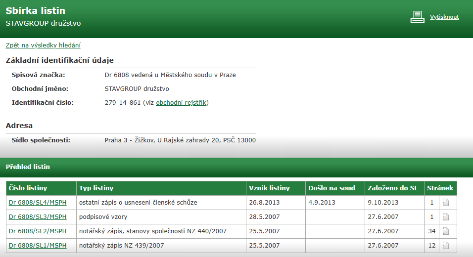 Společnost STAV GROPUP, IČO 27914861, Praha, podle dostupných údajů dlouhodobě neplní zákonnou povinnost zveřejňovat účetní závěrky ve sbírce listin.